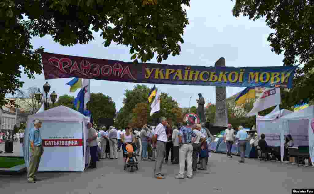 Опозиція створила в центрі Львова "фан-зону української мови" в знак протесту проти мовного закону.